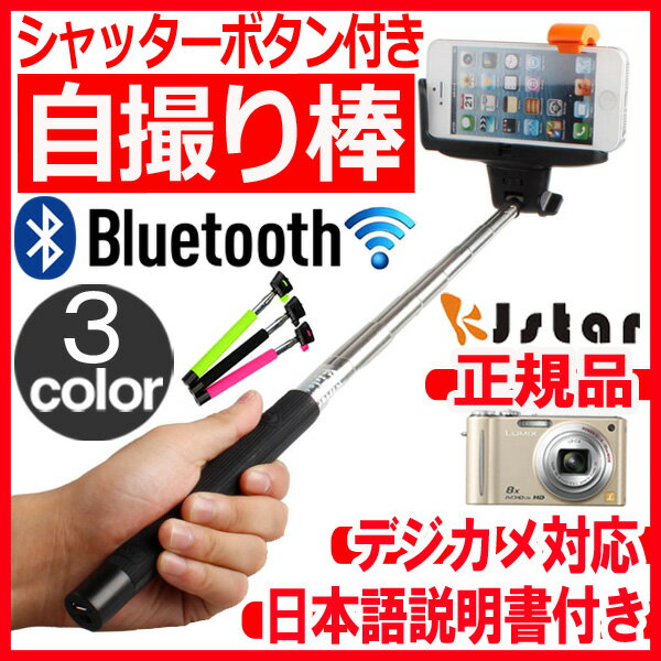 Kjstar正規品 シャッター付き 自撮り棒■iOS4.0〜 のApple製品■Android3.0〜 のスマートフォンiPhone6/6Plus,iPhone4/4S,iPhone5/5S/5C,その他スマートフォン、デジタルカメラなど。クリップ部 5.5cm〜8.5cm★Bluetooth非対応の端末でもセルフタイマーでご使用頂く事が可能です。サイズ:約235〜1005mm重量:169g耐荷重:500gカメラネジ規格:6mmセット内容: ・モノポッド本体・固定ホルダー・microUSBケーブル・ガスケット・日本語説明書製造国:中国※デジタルカメラでご使用する場合はセルフタイマー機能のついたカメラをご用意下さ...