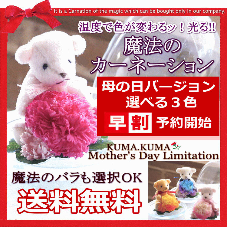送料無料≪母の日 ギフト 2015 早割≫温度で色が変わるッ★魔法のプリザーブドフラワー カーネーション バラ (KUMA・KUMA)ドーム【母の日カード付】 【RCP】花 フラワー プレゼント