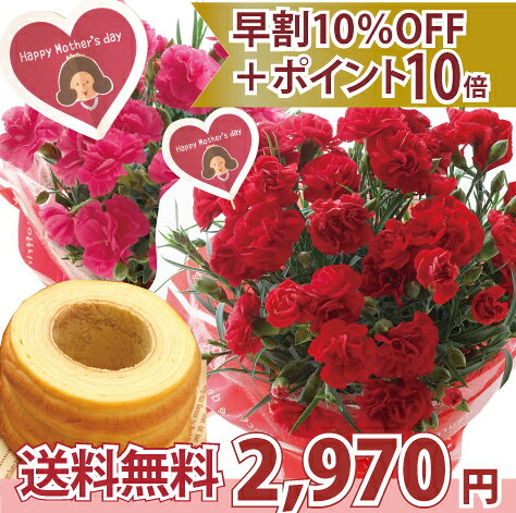 【母の日ギフト】早期特典 ポイント10倍 早期割引 10%割引 実施中早期限定 お買い得★カーネーション花鉢とスイーツのセット【母の日ギフト】お花/フラワーギフト/花鉢/赤/ピンク/カステラ/バウムクーヘン/スイーツ/セット/プレゼント【楽ギフ_包装】