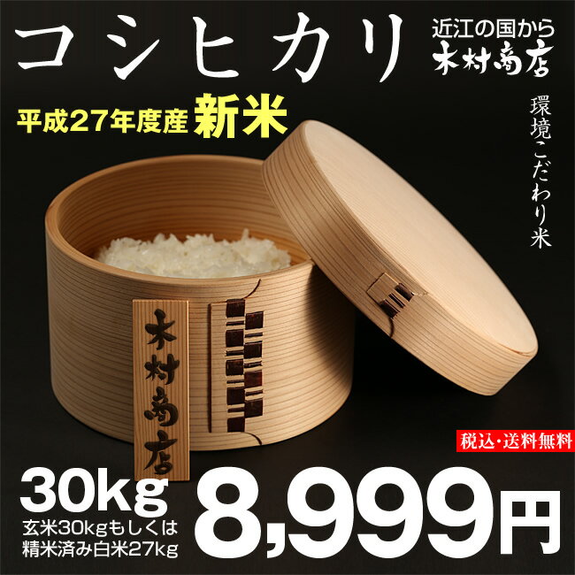 コシヒカリ 環境こだわり米 玄米のまま30kgもしくは精米済み白米27kg【平成27年・滋賀県産】【送料無料】