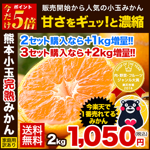 \ポイント5倍+1セットで50円OFF・2セットで100円OFFクーポン/【送料無料】「熊本小玉完熟みかん」家庭用訳あり2kg★【2セット購入で+1kg増量】3S〜Sサイズ混合※複数セット購入の際1箱おまとめ《11月7日-11月下旬頃より順次出荷》
